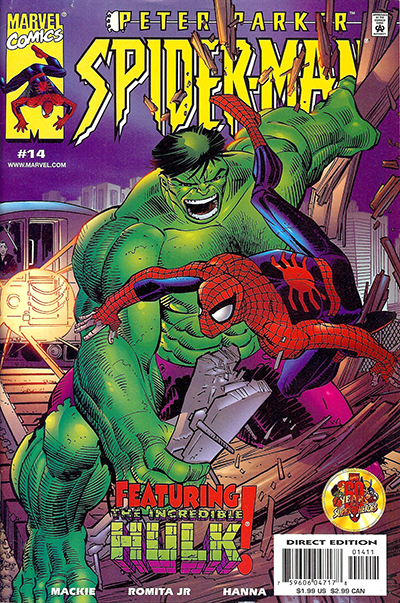 | Peter Parker: Spider-Man No. 14 - February, 2000. Published monthly by MARVEL PUBLISHING, INC. a subsidiary of MARVEL ENTERTAINMENT, INC. OFFICE OF PUBLICATION: 417 5th Avenue, New York, NY 10016. © 2000 Marvel Characters, Inc. All rights reserved. All characters featured in this issue and the distinctive names and likenesses therof, and all related indicia are trademarks of Marvel Characters, Inc. No similarity between any of the names, characters, persons, and/or institutions in this magazine with those of any living or dead persons or institutions is intended, and any such similarity which may exist is purely conicidental. |