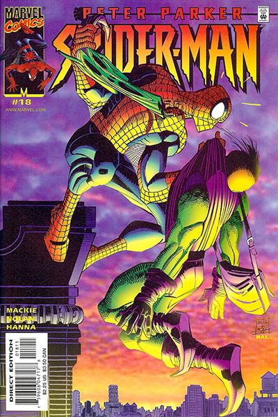 | Peter Parker: Spider-Man No. 18 - June, 2000. Published monthly by MARVEL PUBLISHING, INC. a subsidiary of MARVEL ENTERTAINMENT, INC. OFFICE OF PUBLICATION: 417 5th Avenue, New York, NY 10016. © 2000 Marvel Characters, Inc. All rights reserved. All characters featured in this issue and the distinctive names and likenesses therof, and all related indicia are trademarks of Marvel Characters, Inc. No similarity between any of the names, characters, persons, and/or institutions in this magazine with those of any living or dead persons or institutions is intended, and any such similarity which may exist is purely conicidental. |