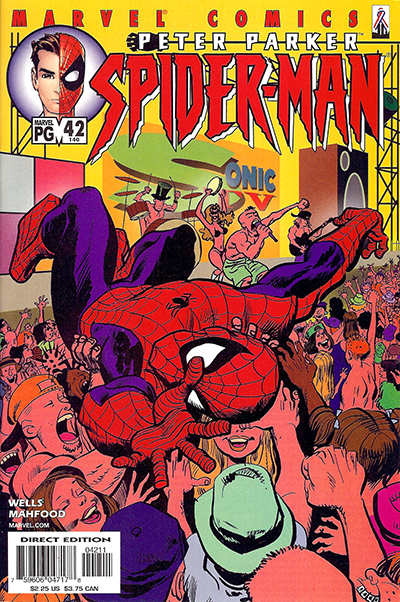| Peter Parker: Spider-Man No. 42 - June, 2002. Published monthly by MARVEL PUBLISHING, INC. a subsidiary of MARVEL ENTERTAINMENT, INC. OFFICE OF PUBLICATION: 417 5th Avenue, New York, NY 10016. © 2002 Marvel Characters, Inc. All rights reserved. All characters featured in this issue and the distinctive names and likenesses therof, and all related indicia are trademarks of Marvel Characters, Inc. No similarity between any of the names, characters, persons, and/or institutions in this magazine with those of any living or dead persons or institutions is intended, and any such similarity which may exist is purely conicidental. |