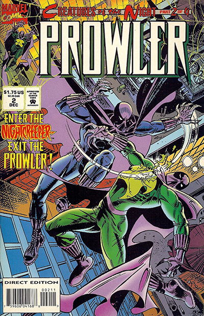| Prowler No. 2 - December, 1994. Published monthly by MARVEL PUBLISHING, INC. a subsidiary of MARVEL ENTERTAINMENT, INC. OFFICE OF PUBLICATION: 417 5th Avenue, New York, NY 10016. © 1994 Marvel Characters, Inc. All rights reserved. All characters featured in this issue and the distinctive names and likenesses therof, and all related indicia are trademarks of Marvel Characters, Inc. No similarity between any of the names, characters, persons, and/or institutions in this magazine with those of any living or dead persons or institutions is intended, and any such similarity which may exist is purely conicidental. |