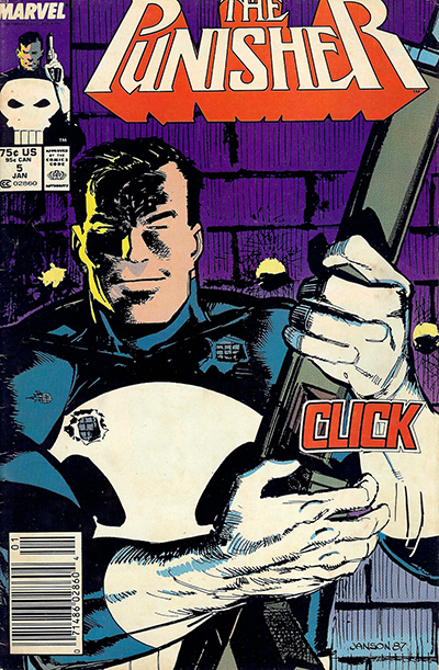 | The Punisher No. 5 - January, 1988. Published monthly by MARVEL PUBLISHING, INC. a subsidiary of MARVEL ENTERTAINMENT, INC. OFFICE OF PUBLICATION: 417 5th Avenue, New York, NY 10016. © 1988 Marvel Characters, Inc. All rights reserved. All characters featured in this issue and the distinctive names and likenesses therof, and all related indicia are trademarks of Marvel Characters, Inc. No similarity between any of the names, characters, persons, and/or institutions in this magazine with those of any living or dead persons or institutions is intended, and any such similarity which may exist is purely conicidental. |