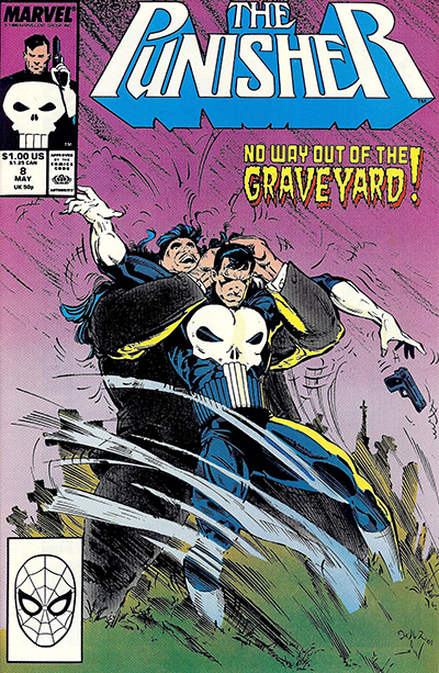 | The Punisher No. 8 - May, 1988. Published monthly by MARVEL PUBLISHING, INC. a subsidiary of MARVEL ENTERTAINMENT, INC. OFFICE OF PUBLICATION: 417 5th Avenue, New York, NY 10016. © 1988 Marvel Characters, Inc. All rights reserved. All characters featured in this issue and the distinctive names and likenesses therof, and all related indicia are trademarks of Marvel Characters, Inc. No similarity between any of the names, characters, persons, and/or institutions in this magazine with those of any living or dead persons or institutions is intended, and any such similarity which may exist is purely conicidental. |