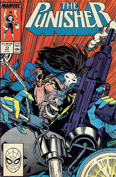 | The Punisher No. 13 - November, 1988. Published monthly by MARVEL PUBLISHING, INC. a subsidiary of MARVEL ENTERTAINMENT, INC. OFFICE OF PUBLICATION: 417 5th Avenue, New York, NY 10016. © 1988 Marvel Characters, Inc. All rights reserved. All characters featured in this issue and the distinctive names and likenesses therof, and all related indicia are trademarks of Marvel Characters, Inc. No similarity between any of the names, characters, persons, and/or institutions in this magazine with those of any living or dead persons or institutions is intended, and any such similarity which may exist is purely conicidental. |
