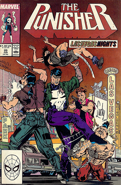 | The Punisher No. 20 - June, 1989. Published monthly by MARVEL PUBLISHING, INC. a subsidiary of MARVEL ENTERTAINMENT, INC. OFFICE OF PUBLICATION: 417 5th Avenue, New York, NY 10016. © 1989 Marvel Characters, Inc. All rights reserved. All characters featured in this issue and the distinctive names and likenesses therof, and all related indicia are trademarks of Marvel Characters, Inc. No similarity between any of the names, characters, persons, and/or institutions in this magazine with those of any living or dead persons or institutions is intended, and any such similarity which may exist is purely conicidental. |