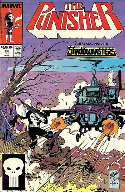 | The Punisher No. 24 - October, 1989. Published monthly by MARVEL PUBLISHING, INC. a subsidiary of MARVEL ENTERTAINMENT, INC. OFFICE OF PUBLICATION: 417 5th Avenue, New York, NY 10016. © 1989 Marvel Characters, Inc. All rights reserved. All characters featured in this issue and the distinctive names and likenesses therof, and all related indicia are trademarks of Marvel Characters, Inc. No similarity between any of the names, characters, persons, and/or institutions in this magazine with those of any living or dead persons or institutions is intended, and any such similarity which may exist is purely conicidental. |