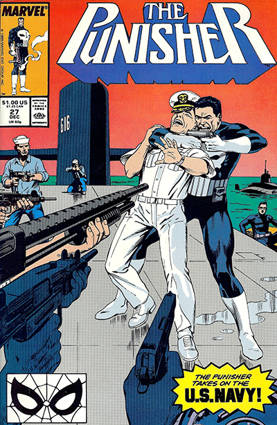 | The Punisher No. 27 - January, 1990. Published monthly by MARVEL PUBLISHING, INC. a subsidiary of MARVEL ENTERTAINMENT, INC. OFFICE OF PUBLICATION: 417 5th Avenue, New York, NY 10016. © 1990 Marvel Characters, Inc. All rights reserved. All characters featured in this issue and the distinctive names and likenesses therof, and all related indicia are trademarks of Marvel Characters, Inc. No similarity between any of the names, characters, persons, and/or institutions in this magazine with those of any living or dead persons or institutions is intended, and any such similarity which may exist is purely conicidental. |