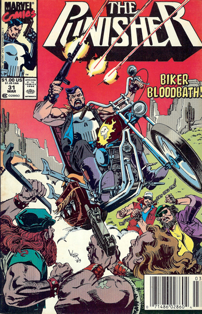 | The Punisher No. 31 - March, 1990. Published monthly by MARVEL PUBLISHING, INC. a subsidiary of MARVEL ENTERTAINMENT, INC. OFFICE OF PUBLICATION: 417 5th Avenue, New York, NY 10016. © 1990 Marvel Characters, Inc. All rights reserved. All characters featured in this issue and the distinctive names and likenesses therof, and all related indicia are trademarks of Marvel Characters, Inc. No similarity between any of the names, characters, persons, and/or institutions in this magazine with those of any living or dead persons or institutions is intended, and any such similarity which may exist is purely conicidental. |