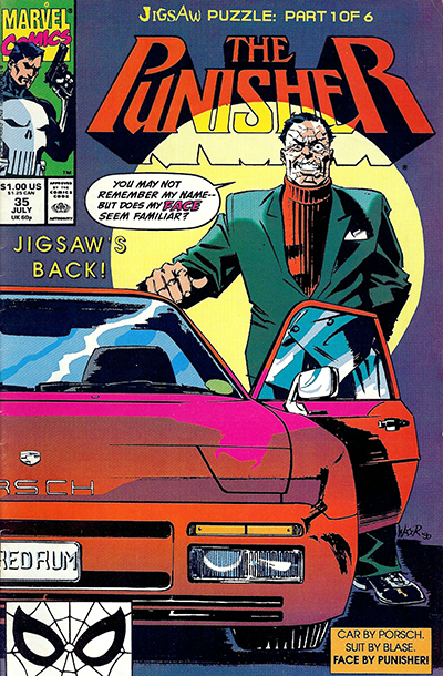 | The Punisher No. 35 - July, 1990. Published monthly by MARVEL PUBLISHING, INC. a subsidiary of MARVEL ENTERTAINMENT, INC. OFFICE OF PUBLICATION: 417 5th Avenue, New York, NY 10016. © 1990 Marvel Characters, Inc. All rights reserved. All characters featured in this issue and the distinctive names and likenesses therof, and all related indicia are trademarks of Marvel Characters, Inc. No similarity between any of the names, characters, persons, and/or institutions in this magazine with those of any living or dead persons or institutions is intended, and any such similarity which may exist is purely conicidental. |