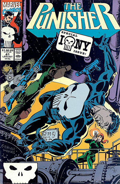 | The Punisher No. 41 - October, 1990. Published monthly by MARVEL PUBLISHING, INC. a subsidiary of MARVEL ENTERTAINMENT, INC. OFFICE OF PUBLICATION: 417 5th Avenue, New York, NY 10016. © 1990 Marvel Characters, Inc. All rights reserved. All characters featured in this issue and the distinctive names and likenesses therof, and all related indicia are trademarks of Marvel Characters, Inc. No similarity between any of the names, characters, persons, and/or institutions in this magazine with those of any living or dead persons or institutions is intended, and any such similarity which may exist is purely conicidental. |