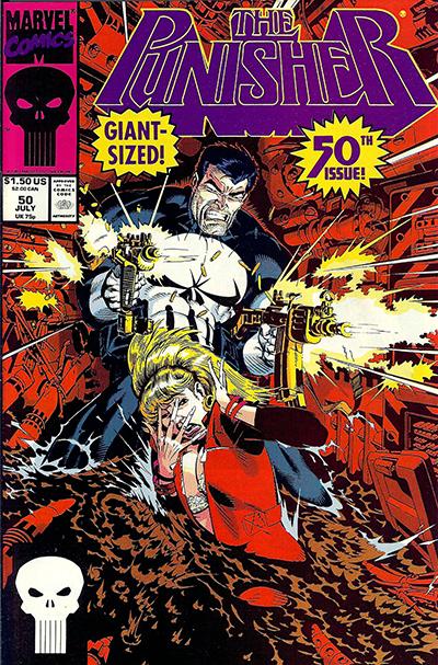 | The Punisher No. 50 - July, 1991. Published monthly by MARVEL PUBLISHING, INC. a subsidiary of MARVEL ENTERTAINMENT, INC. OFFICE OF PUBLICATION: 417 5th Avenue, New York, NY 10016. © 1991 Marvel Characters, Inc. All rights reserved. All characters featured in this issue and the distinctive names and likenesses therof, and all related indicia are trademarks of Marvel Characters, Inc. No similarity between any of the names, characters, persons, and/or institutions in this magazine with those of any living or dead persons or institutions is intended, and any such similarity which may exist is purely conicidental. |