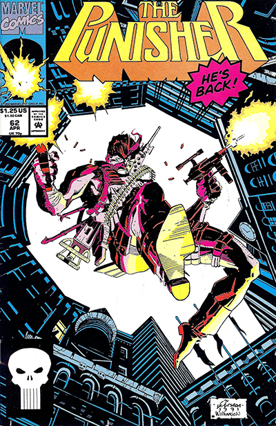 | The Punisher No. 62 - April, 1992. Published monthly by MARVEL PUBLISHING, INC. a subsidiary of MARVEL ENTERTAINMENT, INC. OFFICE OF PUBLICATION: 417 5th Avenue, New York, NY 10016. © 1992 Marvel Characters, Inc. All rights reserved. All characters featured in this issue and the distinctive names and likenesses therof, and all related indicia are trademarks of Marvel Characters, Inc. No similarity between any of the names, characters, persons, and/or institutions in this magazine with those of any living or dead persons or institutions is intended, and any such similarity which may exist is purely conicidental. |