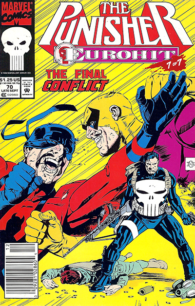 | The Punisher No. 70 - September, 1992. Published monthly by MARVEL PUBLISHING, INC. a subsidiary of MARVEL ENTERTAINMENT, INC. OFFICE OF PUBLICATION: 417 5th Avenue, New York, NY 10016. © 1992 Marvel Characters, Inc. All rights reserved. All characters featured in this issue and the distinctive names and likenesses therof, and all related indicia are trademarks of Marvel Characters, Inc. No similarity between any of the names, characters, persons, and/or institutions in this magazine with those of any living or dead persons or institutions is intended, and any such similarity which may exist is purely conicidental. |