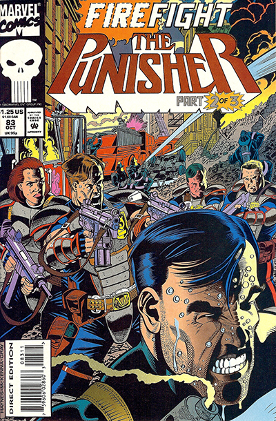 | The Punisher No. 83 - October, 1993. Published monthly by MARVEL PUBLISHING, INC. a subsidiary of MARVEL ENTERTAINMENT, INC. OFFICE OF PUBLICATION: 417 5th Avenue, New York, NY 10016. © 1993 Marvel Characters, Inc. All rights reserved. All characters featured in this issue and the distinctive names and likenesses therof, and all related indicia are trademarks of Marvel Characters, Inc. No similarity between any of the names, characters, persons, and/or institutions in this magazine with those of any living or dead persons or institutions is intended, and any such similarity which may exist is purely conicidental. |