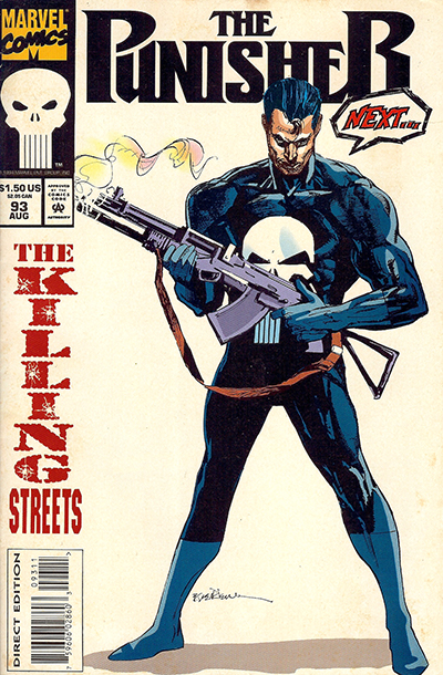 | The Punisher No. 93 - August, 1994. Published monthly by MARVEL PUBLISHING, INC. a subsidiary of MARVEL ENTERTAINMENT, INC. OFFICE OF PUBLICATION: 417 5th Avenue, New York, NY 10016. © 1994 Marvel Characters, Inc. All rights reserved. All characters featured in this issue and the distinctive names and likenesses therof, and all related indicia are trademarks of Marvel Characters, Inc. No similarity between any of the names, characters, persons, and/or institutions in this magazine with those of any living or dead persons or institutions is intended, and any such similarity which may exist is purely conicidental. |