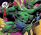 | The Abomination is knocked into a vat of toxic waste during a battle with the Hulk, making his revolting face even more repugnant! AS SEEN IN: Hulk #364, Mid-December 1989 | |