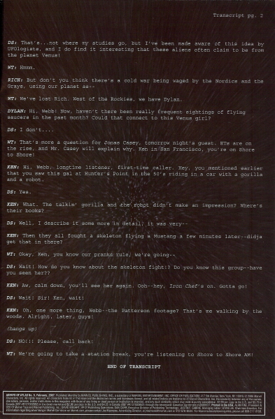 | Agents Of Atlas No. 5 - February, 2007. Published monthly by MARVEL PUBLISHING, INC. a subsidiary of MARVEL ENTERTAINMENT, INC. OFFICE OF PUBLICATION: 417 5th Avenue, New York, NY 10016. © 2007 Marvel Characters, Inc. All rights reserved. All characters featured in this issue and the distinctive names and likenesses therof, and all related indicia are trademarks of Marvel Characters, Inc. No similarity between any of the names, characters, persons, and/or institutions in this magazine with those of any living or dead persons or institutions is intended, and any such similarity which may exist is purely conicidental. |