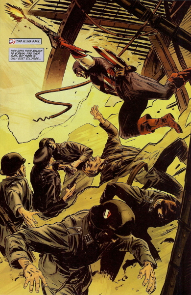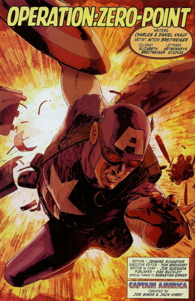 | Captain America Theater Of War: Operation Zero-Point No. 1 - December, 2008. Published monthly by MARVEL PUBLISHING, INC. a subsidiary of MARVEL ENTERTAINMENT, INC. OFFICE OF PUBLICATION: 417 5th Avenue, New York, NY 10016. © 2008 Marvel Characters, Inc. All rights reserved. All characters featured in this issue and the distinctive names and likenesses therof, and all related indicia are trademarks of Marvel Characters, Inc. No similarity between any of the names, characters, persons, and/or institutions in this magazine with those of any living or dead persons or institutions is intended, and any such similarity which may exist is purely conicidental. |