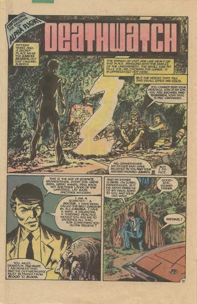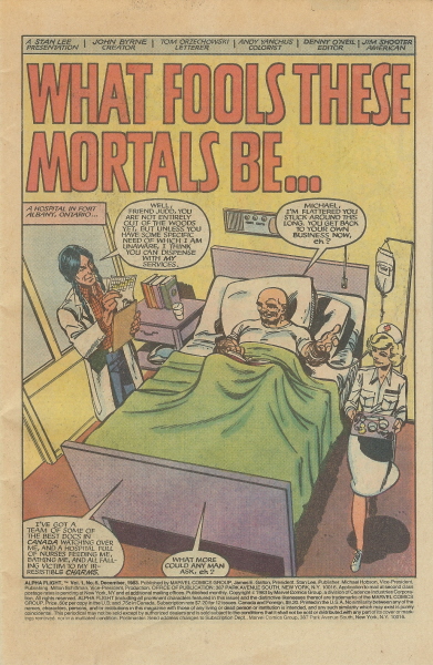 Alpha Flight No. 5 - December, 1983. Published monthly by MARVEL PUBLISHING, INC. a subsidiary of MARVEL ENTERTAINMENT, INC. OFFICE OF PUBLICATION: 417 5th Avenue, New York, NY 10016. © 1983 Marvel Characters, Inc. All rights reserved. All characters featured in this issue and the distinctive names and likenesses therof, and all related indicia are trademarks of Marvel Characters, Inc. No similarity between any of the names, characters, persons, and/or institutions in this magazine with those of any living or dead persons or institutions is intended, and any such similarity which may exist is purely conicidental. |