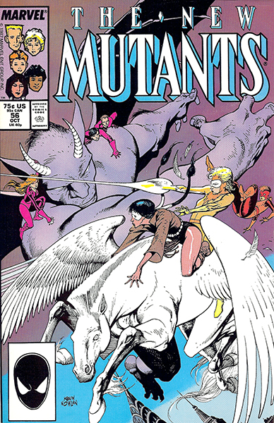 | New Mutants No. 56 - October, 1987. Published monthly by MARVEL PUBLISHING, INC. a subsidiary of MARVEL ENTERTAINMENT, INC. OFFICE OF PUBLICATION: 417 5th Avenue, New York, NY 10016. © 1987 Marvel Characters, Inc. All rights reserved. All characters featured in this issue and the distinctive names and likenesses therof, and all related indicia are trademarks of Marvel Characters, Inc. No similarity between any of the names, characters, persons, and/or institutions in this magazine with those of any living or dead persons or institutions is intended, and any such similarity which may exist is purely conicidental. |