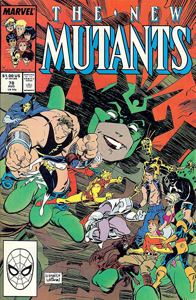 | New Mutants No. 78 - August, 1989. Published monthly by MARVEL PUBLISHING, INC. a subsidiary of MARVEL ENTERTAINMENT, INC. OFFICE OF PUBLICATION: 417 5th Avenue, New York, NY 10016. © 1989 Marvel Characters, Inc. All rights reserved. All characters featured in this issue and the distinctive names and likenesses therof, and all related indicia are trademarks of Marvel Characters, Inc. No similarity between any of the names, characters, persons, and/or institutions in this magazine with those of any living or dead persons or institutions is intended, and any such similarity which may exist is purely conicidental. |