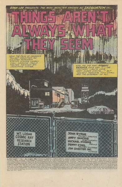 Alpha Flight No. 9 - April, 1984. Published monthly by MARVEL PUBLISHING, INC. a subsidiary of MARVEL ENTERTAINMENT, INC. OFFICE OF PUBLICATION: 417 5th Avenue, New York, NY 10016. © 1984 Marvel Characters, Inc. All rights reserved. All characters featured in this issue and the distinctive names and likenesses therof, and all related indicia are trademarks of Marvel Characters, Inc. No similarity between any of the names, characters, persons, and/or institutions in this magazine with those of any living or dead persons or institutions is intended, and any such similarity which may exist is purely conicidental. |