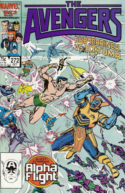 | Avengers No. 272 - October, 1986. Published monthly by MARVEL PUBLISHING, INC. a subsidiary of MARVEL ENTERTAINMENT, INC. OFFICE OF PUBLICATION: 417 5th Avenue, New York, NY 10016. © 1986 Marvel Characters, Inc. All rights reserved. All characters featured in this issue and the distinctive names and likenesses therof, and all related indicia are trademarks of Marvel Characters, Inc. No similarity between any of the names, characters, persons, and/or institutions in this magazine with those of any living or dead persons or institutions is intended, and any such similarity which may exist is purely conicidental. |