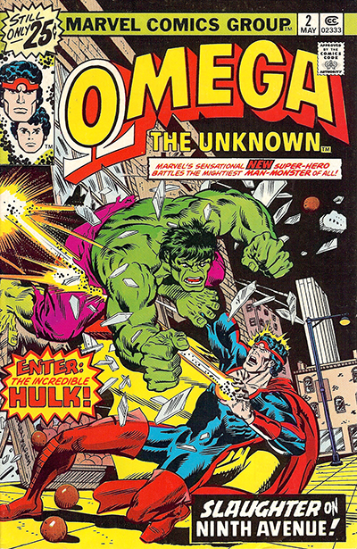 Omega The Unknown No. 2 - May, 1976. Published monthly by MARVEL PUBLISHING, INC. a subsidiary of MARVEL ENTERTAINMENT, INC. OFFICE OF PUBLICATION: 417 5th Avenue, New York, NY 10016. © 1976 Marvel Characters, Inc. All rights reserved. All characters featured in this issue and the distinctive names and likenesses therof, and all related indicia are trademarks of Marvel Characters, Inc. No similarity between any of the names, characters, persons, and/or institutions in this magazine with those of any living or dead persons or institutions is intended, and any such similarity which may exist is purely conicidental. |