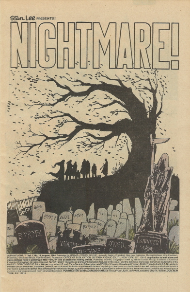 Alpha Flight No. 13 - August, 1984. Published monthly by MARVEL PUBLISHING, INC. a subsidiary of MARVEL ENTERTAINMENT, INC. OFFICE OF PUBLICATION: 417 5th Avenue, New York, NY 10016. © 1984 Marvel Characters, Inc. All rights reserved. All characters featured in this issue and the distinctive names and likenesses therof, and all related indicia are trademarks of Marvel Characters, Inc. No similarity between any of the names, characters, persons, and/or institutions in this magazine with those of any living or dead persons or institutions is intended, and any such similarity which may exist is purely conicidental. |