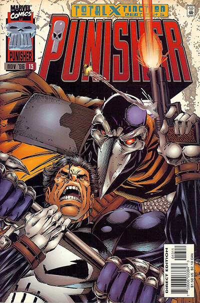 | Punisher No. 13 - November, 1996. Published monthly by MARVEL PUBLISHING, INC. a subsidiary of MARVEL ENTERTAINMENT, INC. OFFICE OF PUBLICATION: 417 5th Avenue, New York, NY 10016. © 1996 Marvel Characters, Inc. All rights reserved. All characters featured in this issue and the distinctive names and likenesses therof, and all related indicia are trademarks of Marvel Characters, Inc. No similarity between any of the names, characters, persons, and/or institutions in this magazine with those of any living or dead persons or institutions is intended, and any such similarity which may exist is purely conicidental. |