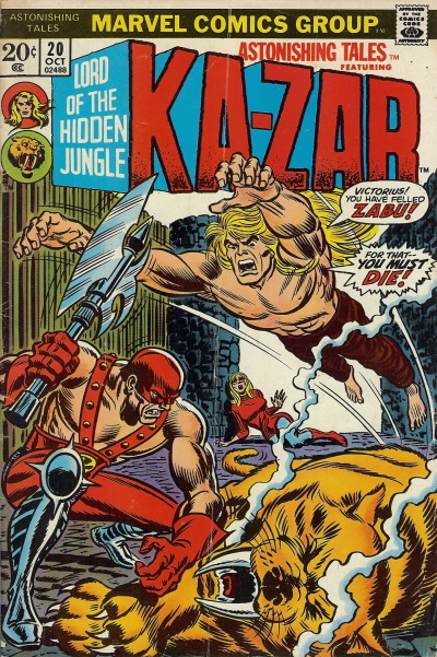 | Astonishing Tales No. 20 - October, 1973. Published monthly by MARVEL PUBLISHING, INC. a subsidiary of MARVEL ENTERTAINMENT, INC. OFFICE OF PUBLICATION: 417 5th Avenue, New York, NY 10016. © 1973 Marvel Characters, Inc. All rights reserved. All characters featured in this issue and the distinctive names and likenesses therof, and all related indicia are trademarks of Marvel Characters, Inc. No similarity between any of the names, characters, persons, and/or institutions in this magazine with those of any living or dead persons or institutions is intended, and any such similarity which may exist is purely conicidental. |