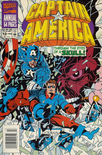 | Captain America Annual No. 13 - December, 1994. Published monthly by MARVEL PUBLISHING, INC. a subsidiary of MARVEL ENTERTAINMENT, INC. OFFICE OF PUBLICATION: 417 5th Avenue, New York, NY 10016. © 1994 Marvel Characters, Inc. All rights reserved. All characters featured in this issue and the distinctive names and likenesses therof, and all related indicia are trademarks of Marvel Characters, Inc. No similarity between any of the names, characters, persons, and/or institutions in this magazine with those of any living or dead persons or institutions is intended, and any such similarity which may exist is purely conicidental. |